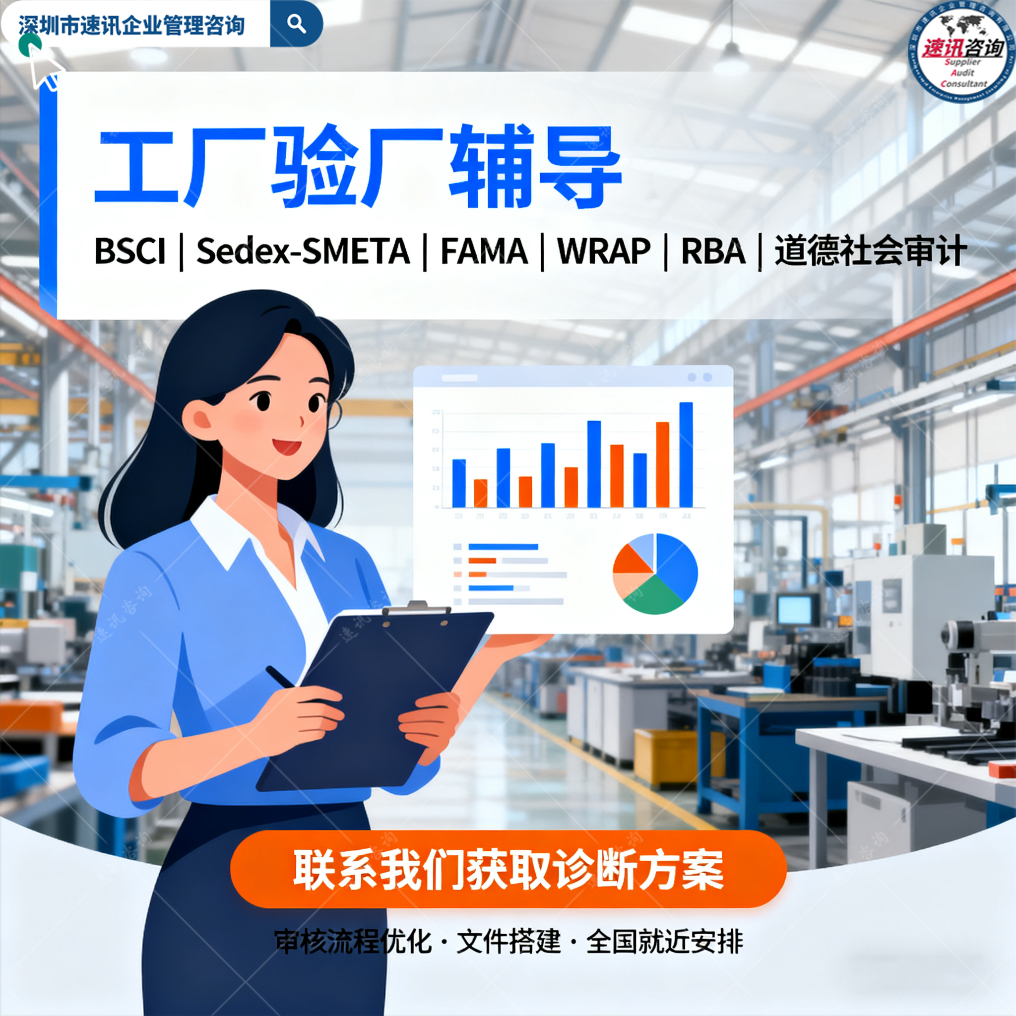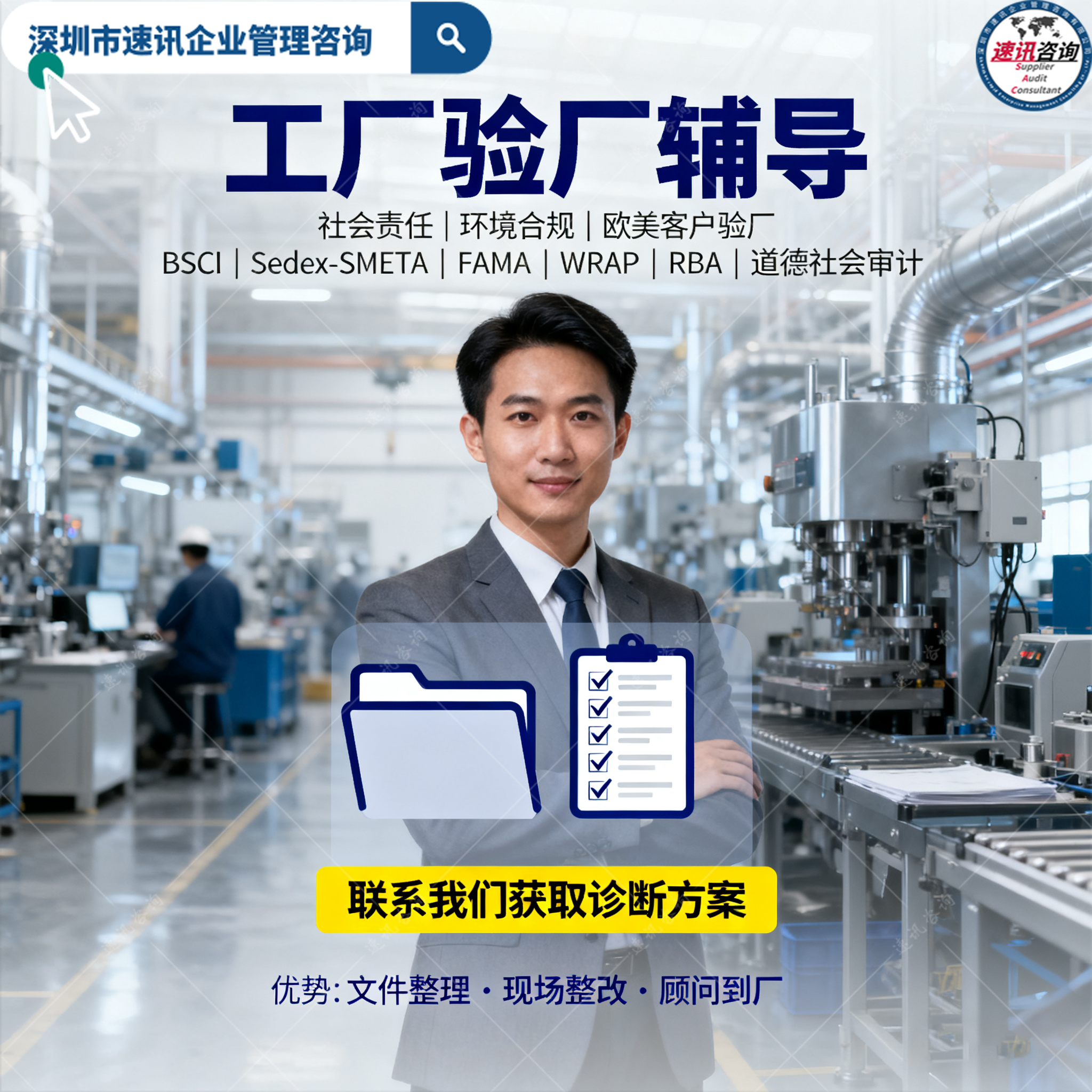 速讯咨询专注:海外客户验厂咨询全方案解决商 | 服务3000+案例制造业工厂 |低成本方案助力企业出海