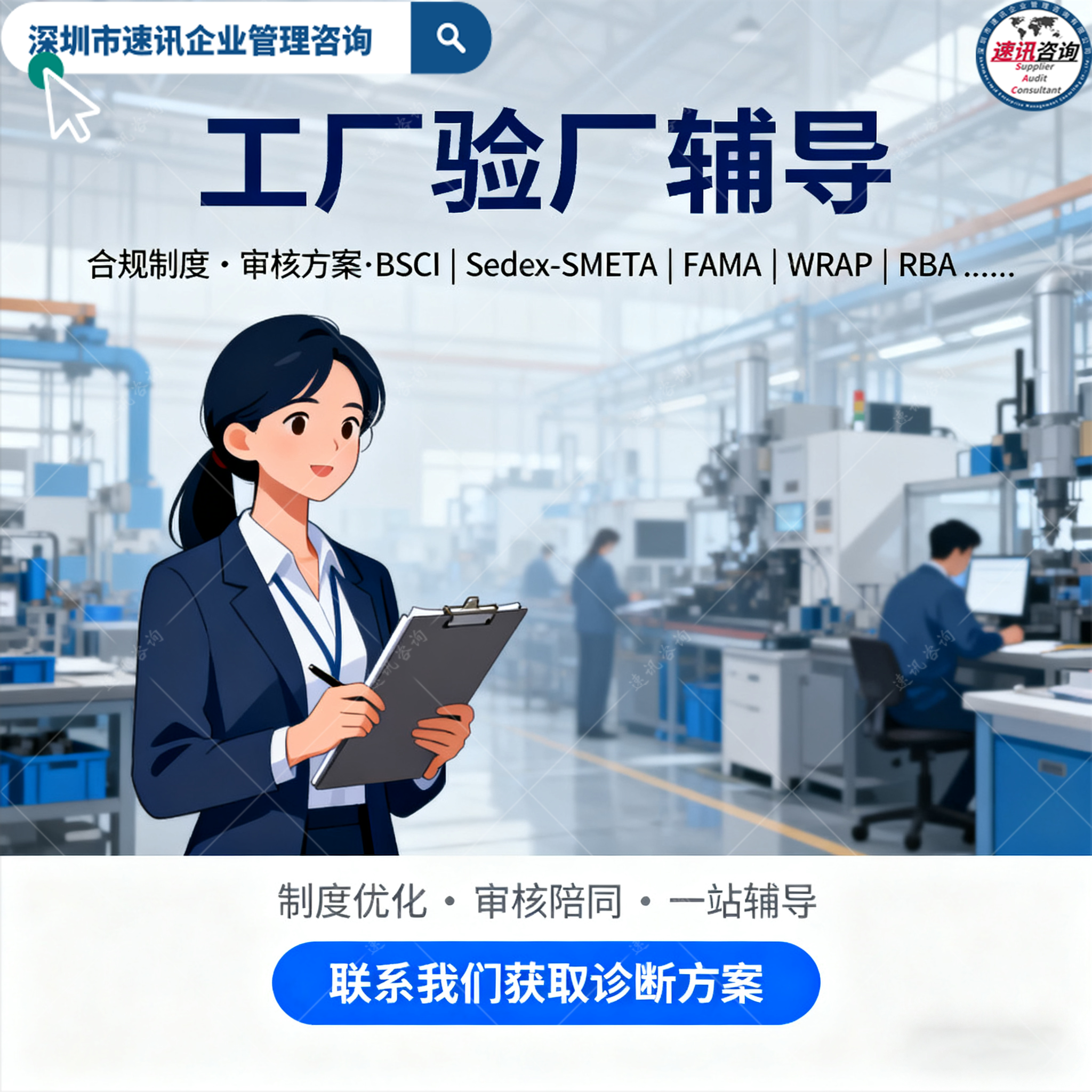 速讯咨询专注:海外客户验厂咨询全方案解决商 | 服务3000+案例制造业工厂 |低成本方案助力企业出海