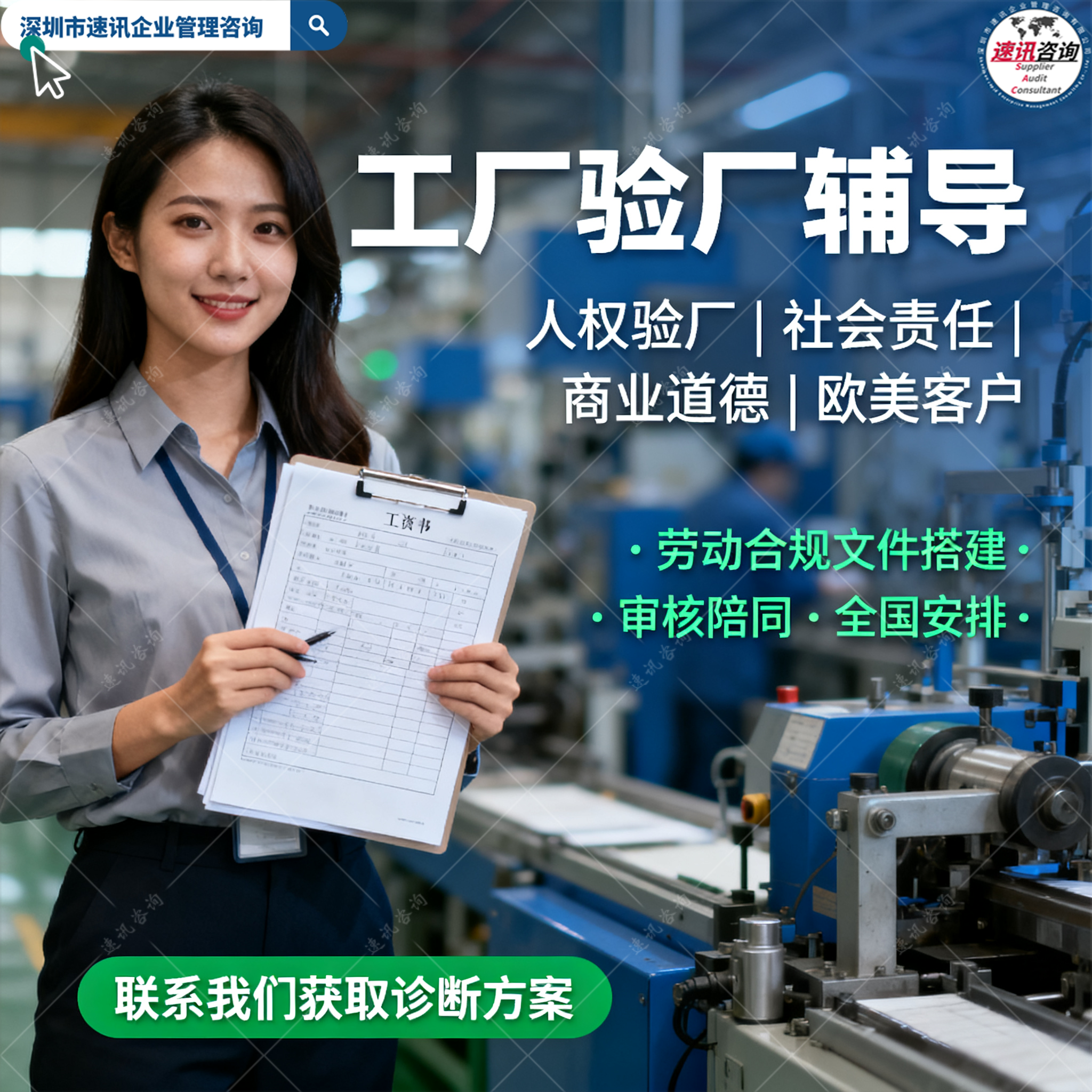 速讯咨询专注:海外客户验厂咨询全方案解决商 | 服务3000+案例制造业工厂 |低成本方案助力企业出海